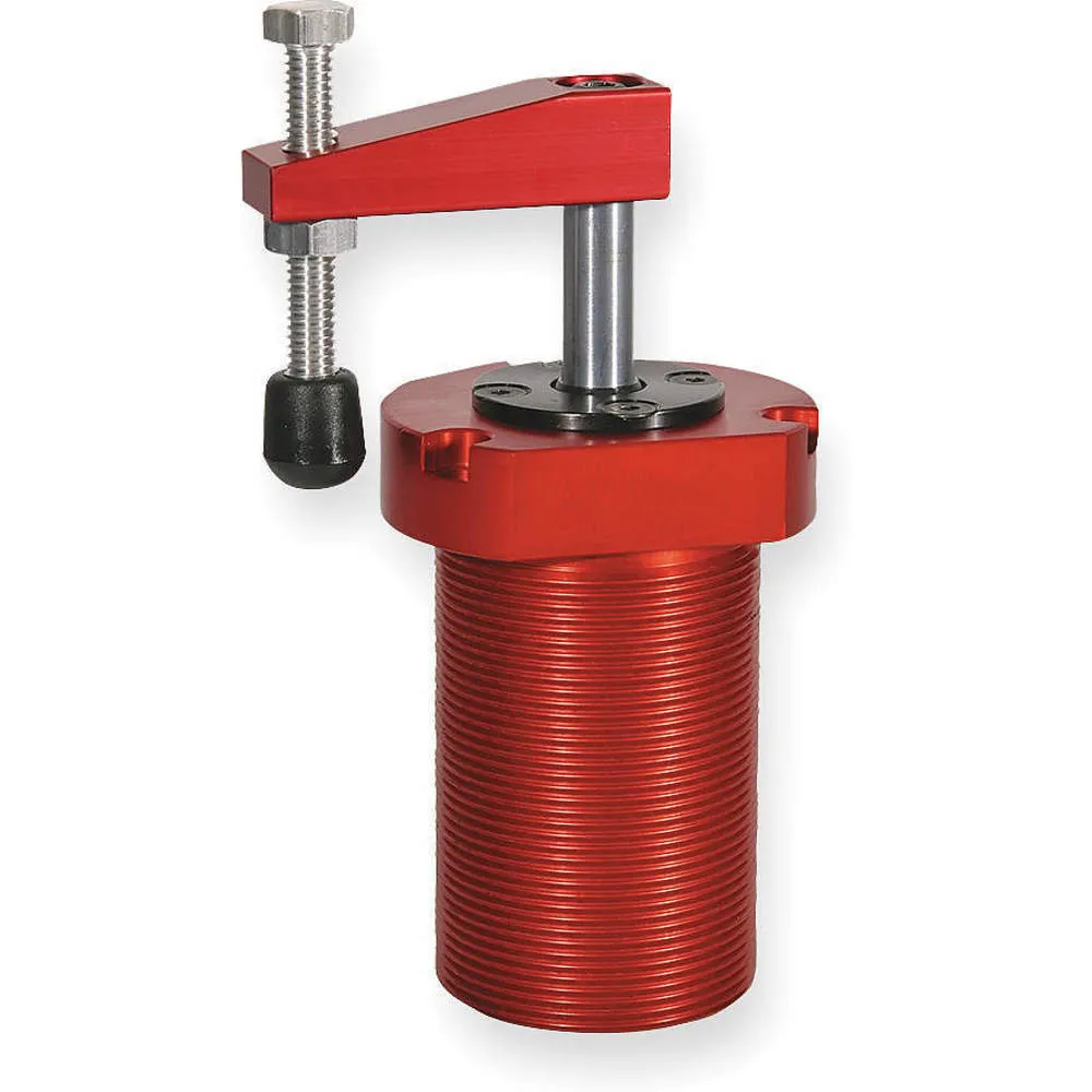 Destaco 8216 pneumatic swing clamp employs a strong hydraulic clamping mechanism for quick swing-and-clamp movement to improve productivity. It is intended for quick clamping in secondary manufacturing operations on both metallic & non-metallic products. This unit offers lock angle repeatability with high accuracy, thereby making clamping on an extremely small area possible. It has a block style aluminium body that can be mounted from the sides or top. This pneumatic swing clamp has a magnetic piston ring for position sensing and is supplied with a clamping arm & spindle that offer a maximum holding capacity of 89 lb. This pneumatic clamp can work at pressure up to 130 psi and at temperatures ranging from -14 degrees Fahrenheit to 195 degrees Fahrenheit. It is equipped with a manually adjustable threaded stud at the end of an air powered pivoting arm that clamps down on the workpiece. This unit is integrated with a pneumatic cylinder having an input port for connecting to a source of compressed air. This Destaco non-locking clamp provides clamping force in direct proportion to the bore size and inlet pressure. The lightweight and robust construction allows several million cycles of operation. If you want to order these swing clamps without the clamping arm, simply add -LA at the end of the MPN. (For example, 8216-LA).